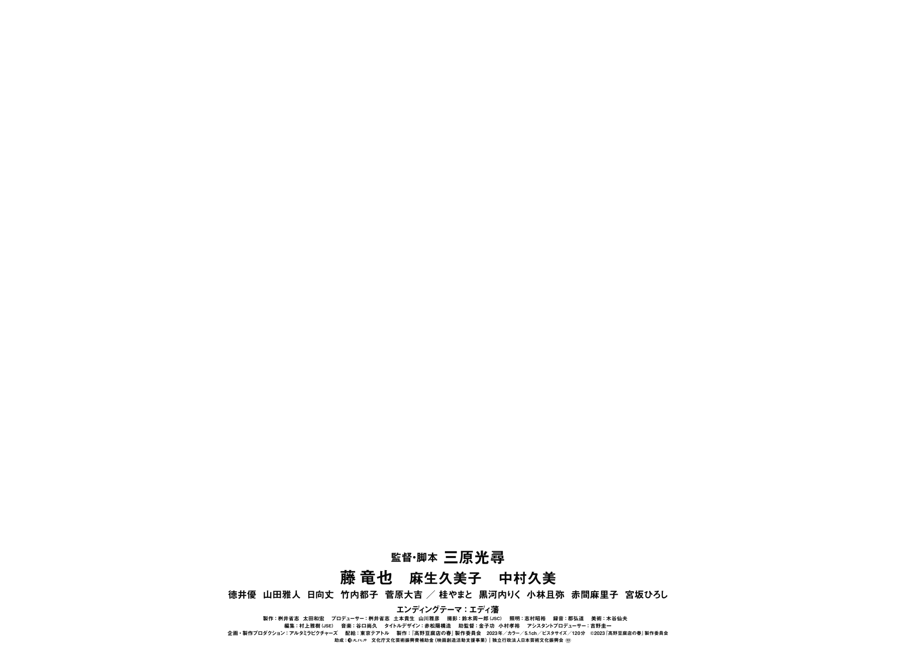 三原は、『しあわせのかおり』以後、いつかまた藤と一緒に映画を作りたいとその機会を熱望していた。そんな折、かつて『村の写真集』で助監督をつとめた小林聖太郎が、倍賞千恵子と藤竜也共演の映画『初恋~お父さん、チビがいなくなりました』('19)を撮った縁で、三原と藤竜也は再会する。「食事の席に僕も呼んでいただいて、その帰り際、藤さんが『三原さん、もう一本映画やりましょうよ』って言ってくださった。ほんとうに嬉しくて、勇気をもらいました」。